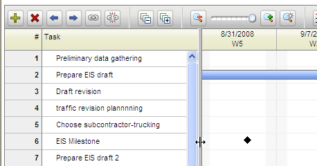 Note: You can also change the task duration in the task grid. If you do not see the Duration column, click and drag the separator bar between the Task list and the Gantt chart: